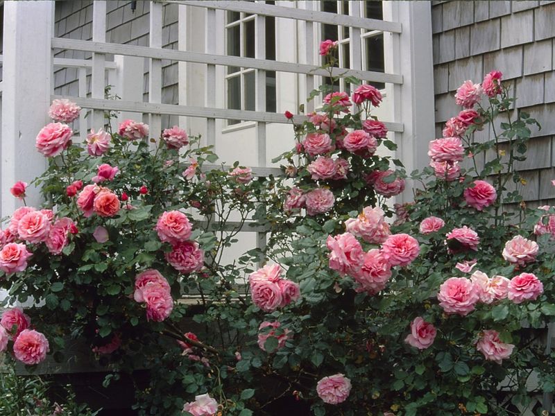 Climbing roses bring a touch of romance to any garden, and when paired with sleek, modern trellises, they create an eye-catching display. Picture classic climbers like roses or clematis weaving their way up gleaming metal or geometric wood structures.