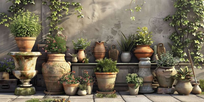 Imagine ornate urns and antique pots scattered throughout your garden, filled with modern plants like trendy succulents or ornamental grasses. This blend of vintage containers with contemporary greenery creates a unique and engaging contrast.