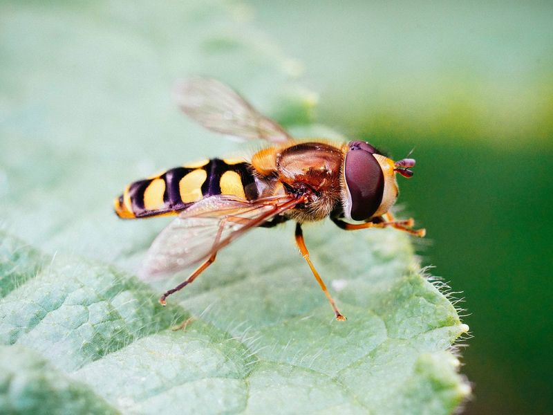 Often mistaken for bees or wasps, these harmless flies are garden superheroes in disguise. Their yellow and black striped bodies mimic stinging insects but hover flies can’t sting – they just borrow the warning coloration for protection.