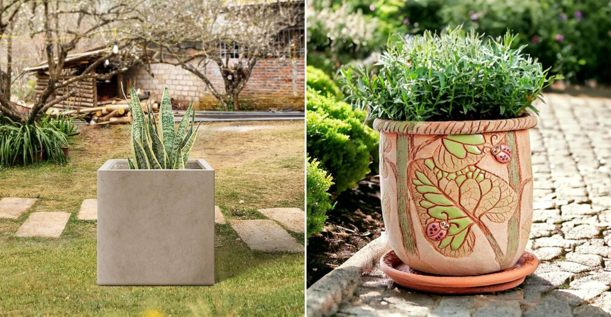 Concrete planters are often seen as a durable choice, but they can make a garden feel heavy and uninspired. Mass-produced and uniform, they lack the character that more personal touches can bring. Concrete’s cold, hard surfaces don’t always complement the organic beauty of plants. They can dominate the space, overshadowing the very greenery they’re meant to enhance. For a garden full of life and charm, consider materials that tell a story and breathe with the natural world.