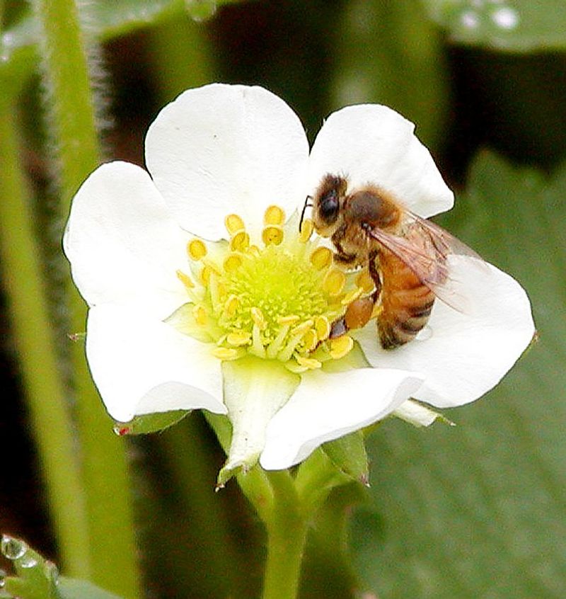 Nature’s tiny helpers play a pivotal role in strawberry sweetness. Encourage a diverse pollinator population—bees, hoverflies—by planting companion flowers like alyssum, borage, or marigolds nearby. These blooms attract beneficial insects, improving fruit size, uniformity, and sugar levels. A thriving pollinator-friendly environment is a ticket to a vibrant garden, where every berry benefits from enhanced pollination. By fostering biodiversity, you create a harmonious ecosystem that supports your strawberries and contributes to their extraordinary flavor. It’s a natural partnership that leads to tastier results.