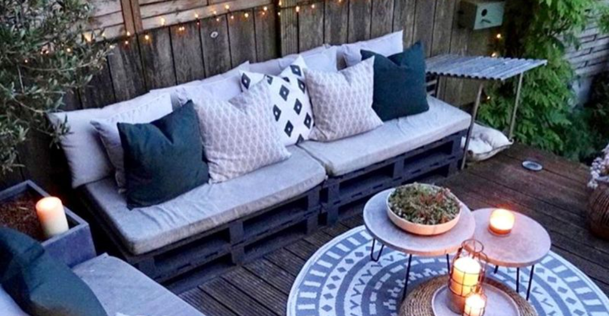 Gather 2-3 wooden pallets, often free from local businesses, and stack them to form a sturdy base. Add a mattress topper and weather-resistant cushions for comfort.