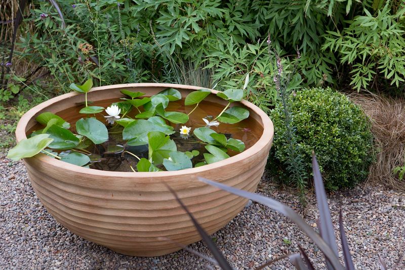 Introduce a soothing water feature to your garden with a mini pond in a pot. Use a large ceramic bowl, add water plants, and a tiny fountain pump.