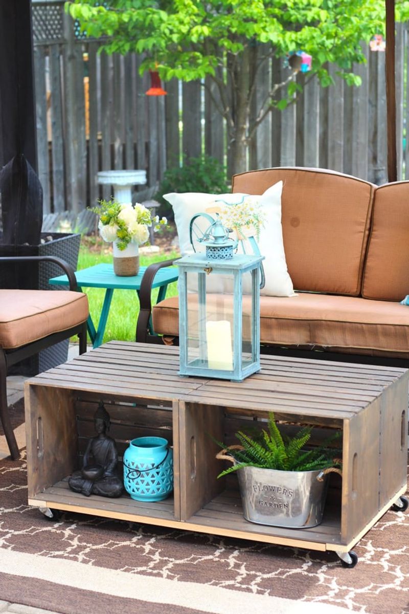 Add rustic flair with citrus crate side tables. Stack and secure wooden produce crates, often free at farmers markets. These tables are perfect for holding drinks or garden essentials.
