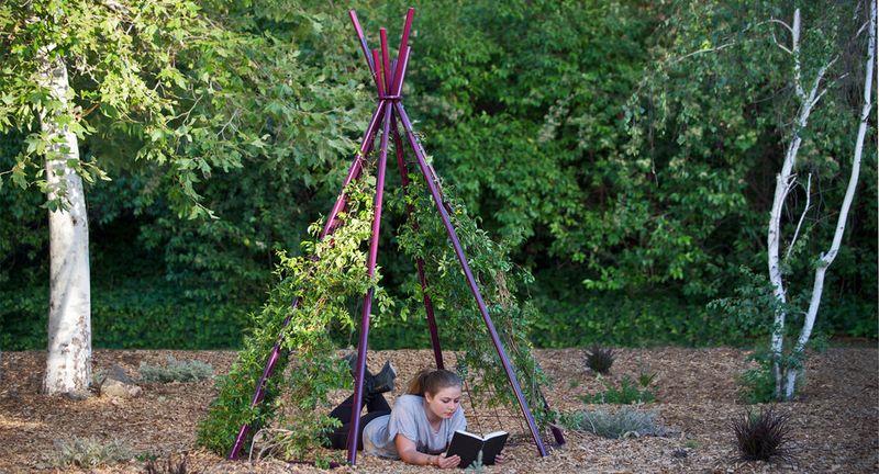 Craft a secluded hideaway with a teepee trellis made from bamboo poles. Encourage fast-growing climbers like morning glories or beans to cover the structure.
