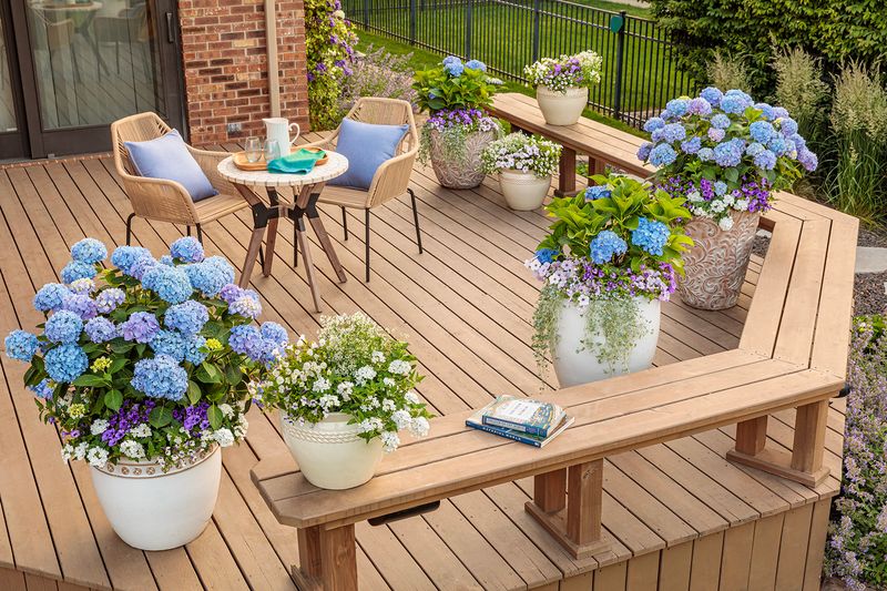 Hydrangeas, with their large clusters of flowers, add a bold statement to small patios. Their vibrant blooms range from blues to pinks, depending on the soil pH.