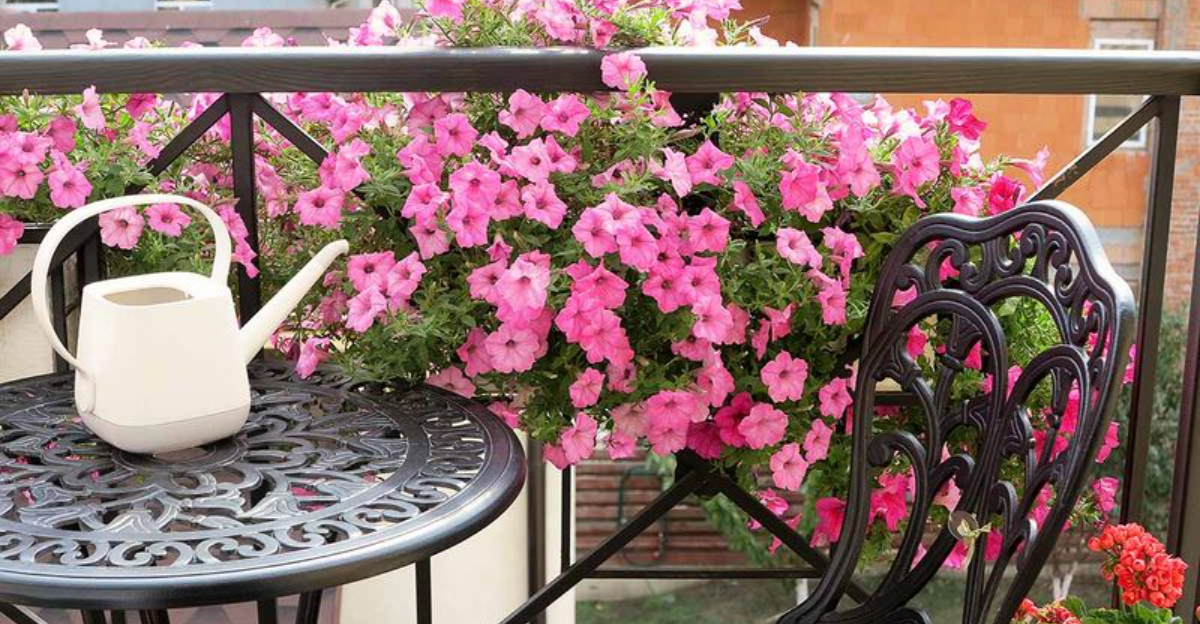 Petunias are known for their colorful, trumpet-shaped flowers that bloom continuously, providing a splash of color to any balcony.