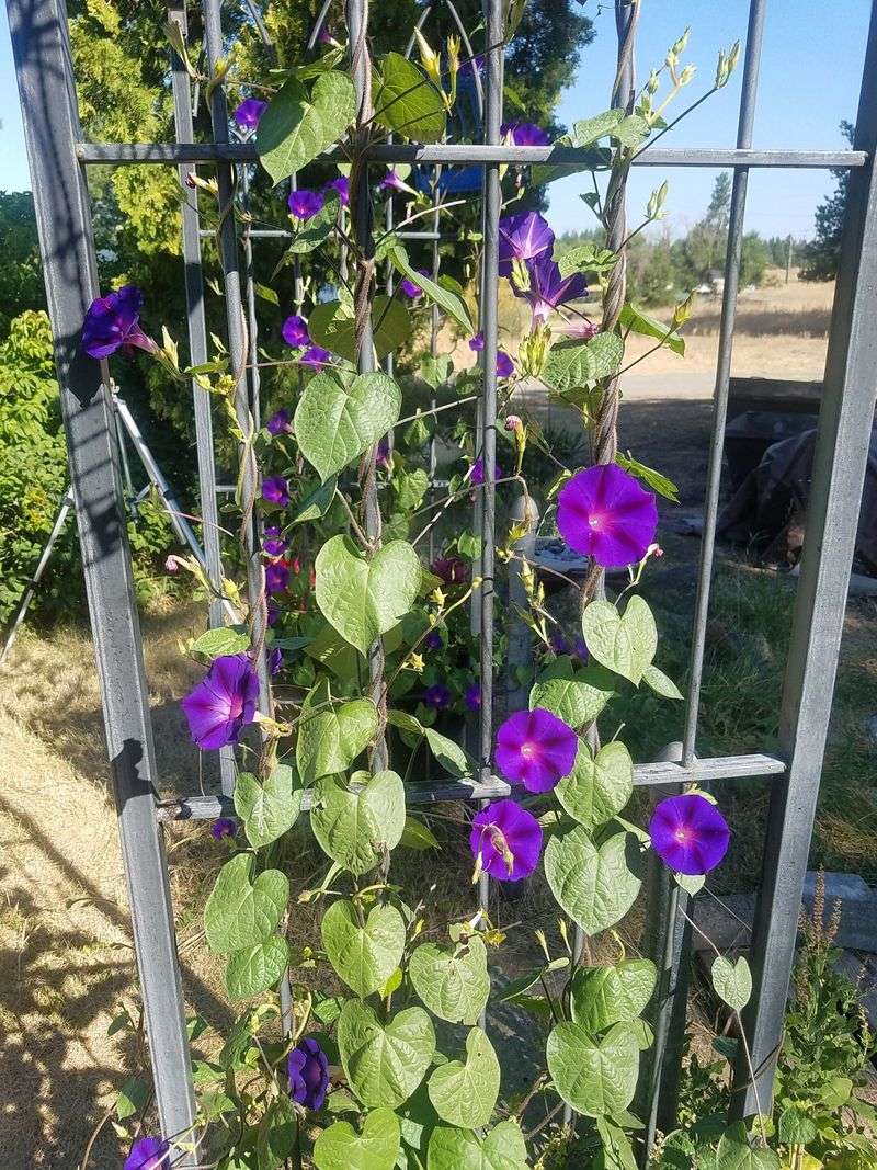 Morning Glory’s vibrant blossoms conceal its invasive side. Rapid growth can quickly overwhelm structures and other plants.