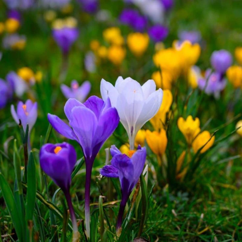 Crocuses signal the end of winter with their early blooms. These bulbs are best planted in the fall to greet spring with color. Hailing from Europe and Asia, Crocuses thrive in sunny, well-drained spots. Their delicate, cup-shaped flowers come in shades of purple, yellow, and white. Perfect for naturalizing, they spread easily and create a carpet of color. Crocuses are hardy and low-maintenance, ideal for rock gardens or lawns. As one of the first flowers to bloom, they bring hope and cheer to any garden.