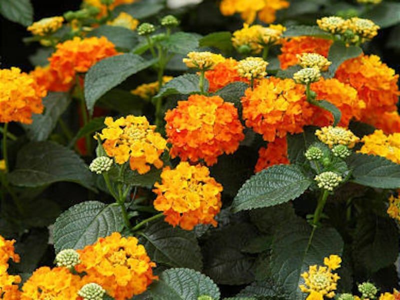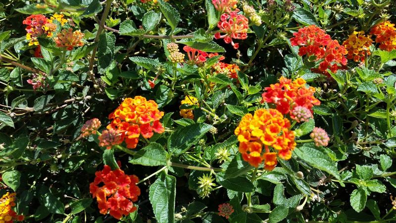 Spectacular color shift! Radiation lantana opens with bright yellow flowers that gradually transform to vivid orange-red, creating multi-colored clusters resembling tiny bouquets. This classic variety has been a garden favorite for generations.