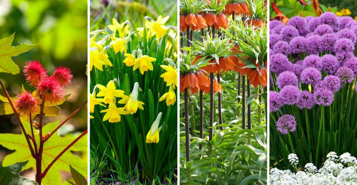 Gardeners appreciate their mole-repelling abilities, allowing other plants to flourish undisturbed. Known for their resilience, castor beans thrive in sunny spots and well-drained soil.