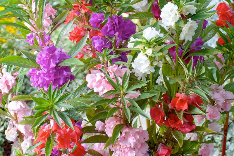 Impatiens are masters at conserving water, often thriving in moist environments. Their succulent-like stems store water, allowing them to endure short periods of drought.