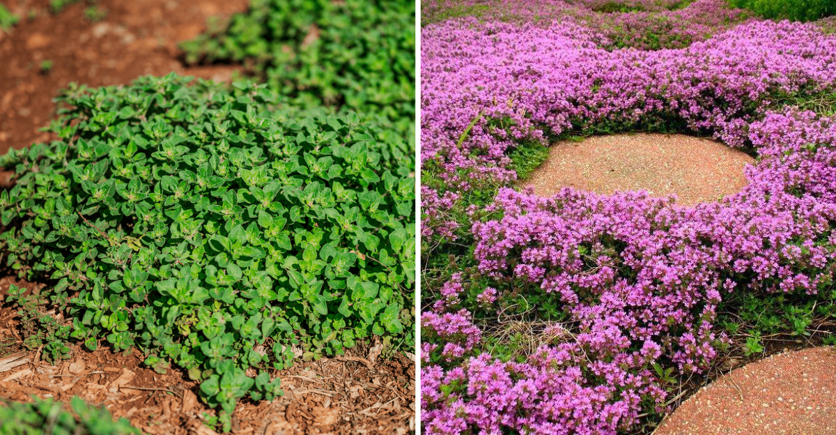 Oregano’s robust flavor is well-known in kitchens, but its ground-covering prowess is equally impressive. With petite leaves and lilac flowers, it forms a dense mat.