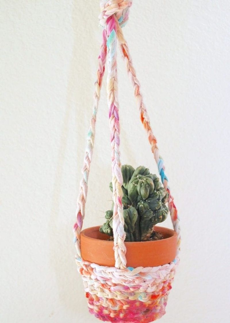Craft hanging planters by cutting old t-shirts into strips and braiding them into macramé-style hangers. These fabric hangers add a touch of bohemian charm to your garden or balcony. Perfect for displaying trailing plants or flowers, they utilize materials you already have at home. This project is both eco-friendly and stylish, making it a great weekend activity. Elevate your garden decor with these unique and colorful hanging planters.