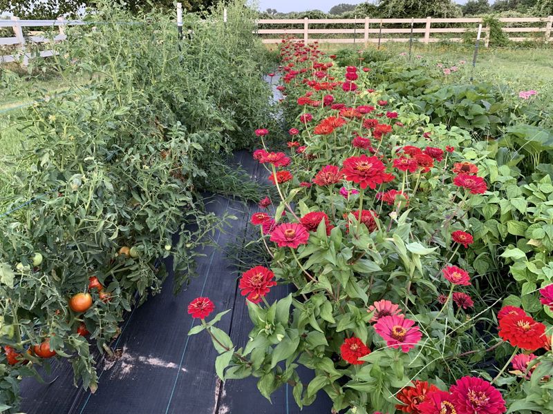 Tomatoes and zinnias create a lively garden duo. Imagine the vibrant display of red, juicy tomatoes alongside the colorful burst of zinnias. The beauty lies not just in their colors but in their partnership.
