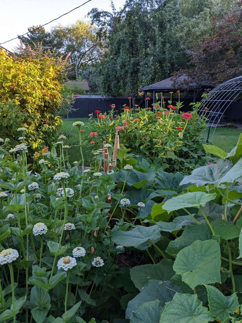 Squash plants and zinnias make a dynamic duo in the garden. Picture the squash’s large, yellow blooms, buzzing with bees attracted by nearby zinnias. This vibrant scene not only pleases the eye but also supports squash pollination.