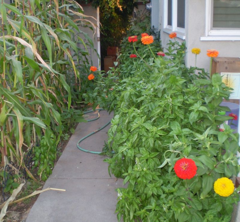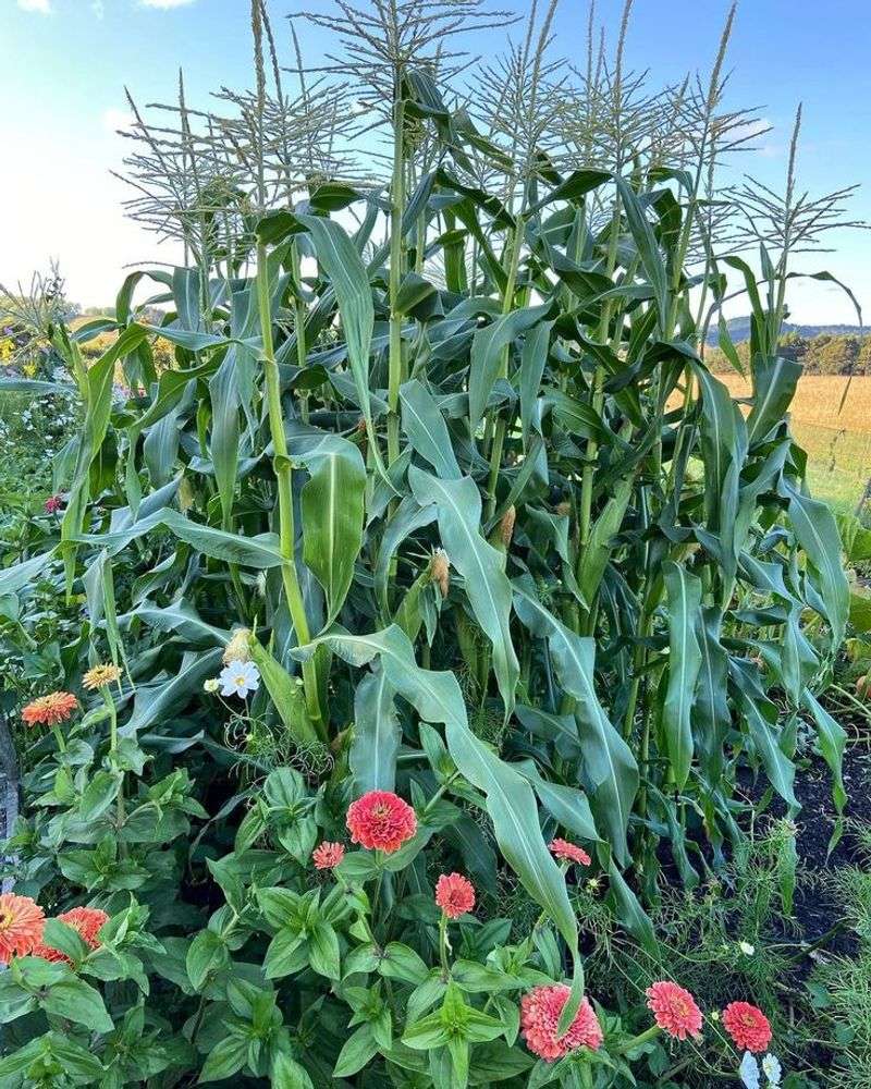 The sight of towering corn and colorful zinnias swaying together is a testament to a healthy, thriving garden partnerships.