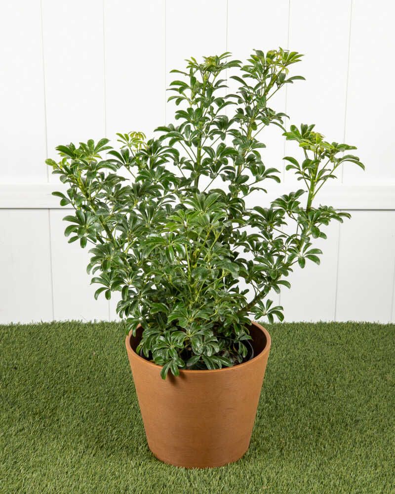 The Dwarf Umbrella Tree is a charming, compact plant with glossy, umbrella-like leaves that create a lush canopy. Its manageable size makes it perfect for indoor environments, where it thrives in bright, indirect light. This plant is easy to maintain, requiring regular watering to keep its vibrant foliage healthy. Often used to add a tropical flair, it works well in living rooms or offices. Its graceful structure and deep green color enhance any decor. Plant enthusiasts appreciate its robust nature and the tranquility it brings to indoor spaces.