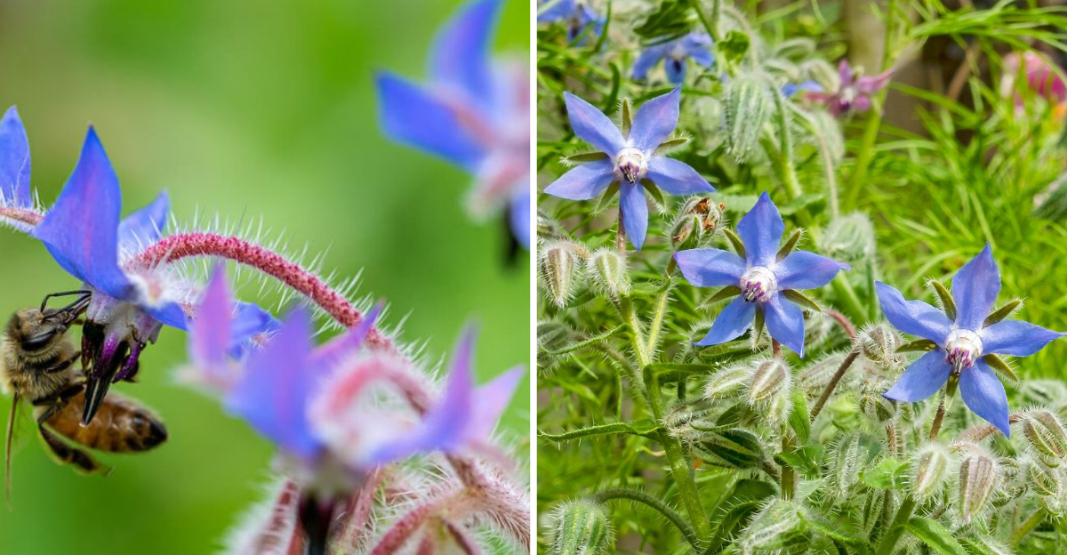 Borage is renowned for its companionship in gardens, benefiting neighboring plants like tomatoes and strawberries. It enhances growth and flavor, making it a gardener’s secret weapon.