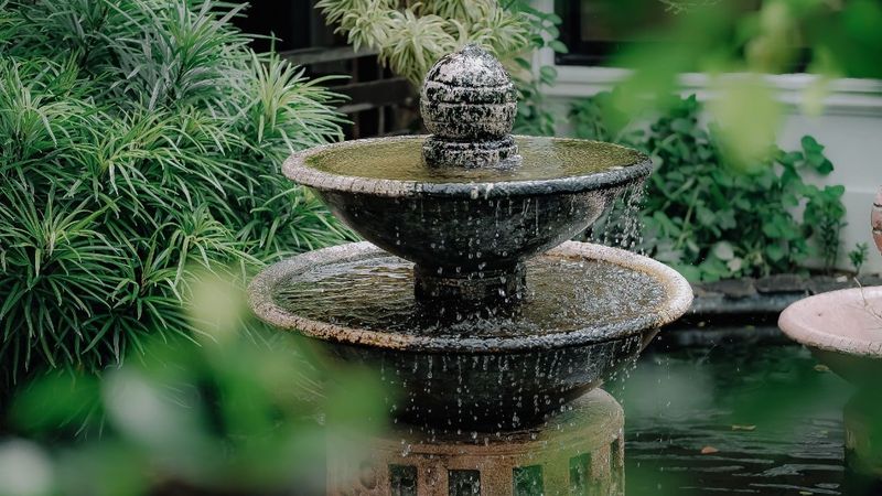 The gentle trickle of a fountain provides a soothing soundtrack to garden life. This constant flow of water creates a sense of harmony and balance.