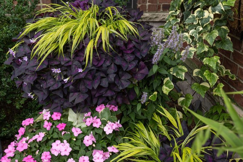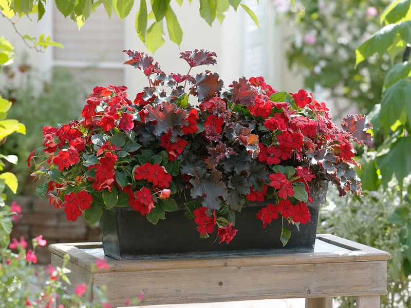 Imagine a garden where every plant plays a unique role in a symphony of colors. Impatiens and heucheras achieve this harmony flawlessly. Heucheras, also known as coral bells, boast a wide range of leaf colors, from silvery grays to vibrant purples. These hues provide a striking contrast to the bright blooms of impatiens. Together, they create a visually stunning display that thrives in shaded environments. This pairing is not only about visual appeal but also about creating a habitat that celebrates diversity and harmony, a true garden masterpiece.