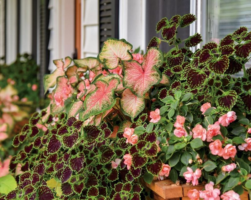 In the realm of garden artistry, impatiens and caladiums are the bold painters. Their vivid colors and striking leaf patterns create a spectacle of nature’s creativity. Caladiums, with their heart-shaped leaves and varied hues, perfectly complement the cheerful blooms of impatiens. This duo thrives in filtered sunlight, where their colors can truly shine. Whether in containers or garden beds, they promise a visual feast that captivates every passerby. Their robust nature ensures they stand out, making them a popular choice for those seeking vibrant garden aesthetics.