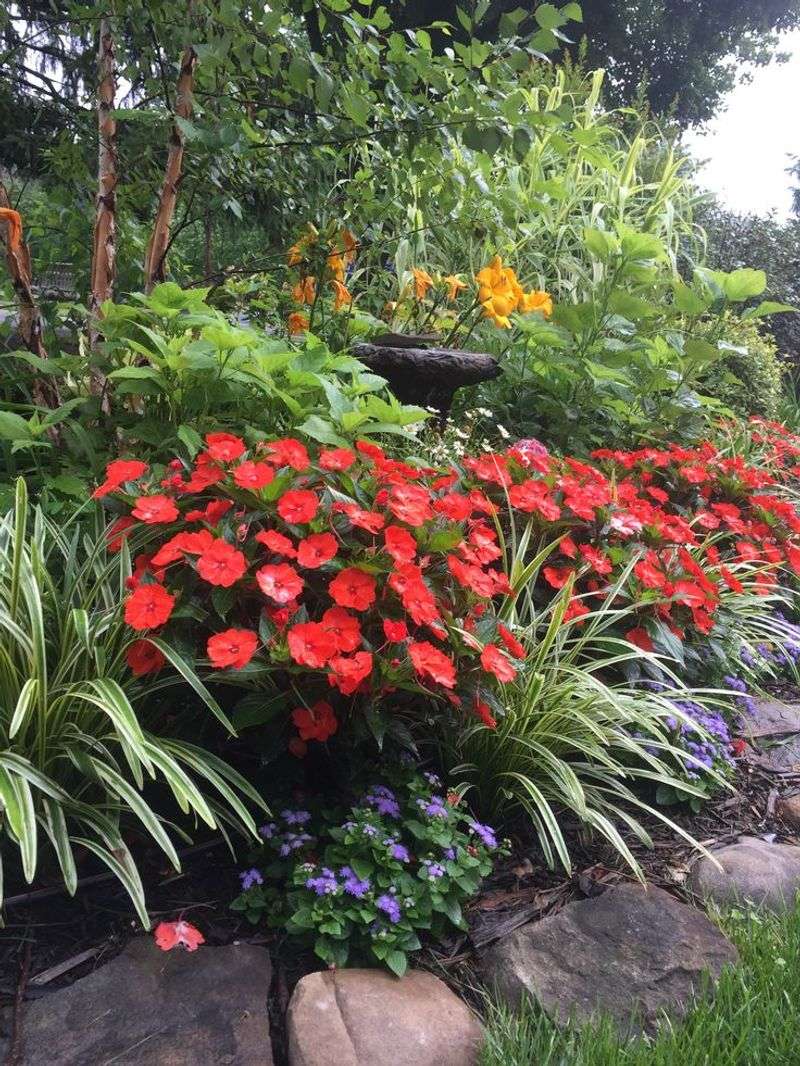 In a garden where structure meets vibrancy, impatiens and liriope make a perfect pair. Liriope, with its arching, grass-like leaves, adds a sense of formality to the impatiens’ lively blooms. This combination is ideal for garden borders, where they create a structured yet vibrant look. Thriving in shaded areas, they bring a sense of elegance and order to any garden space. Together, they offer a garden style that is both refined and playful, making them a favorite for gardeners seeking a balanced and aesthetically pleasing design.