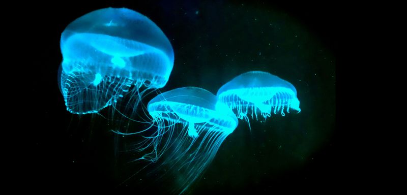 Amidst the vast and dark ocean, jellyfish glow like ethereal beings. Their transparent bodies, adorned with vivid blue and green lights, create a mesmerizing underwater ballet. These lights are not just for show; they play a crucial role in survival.