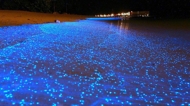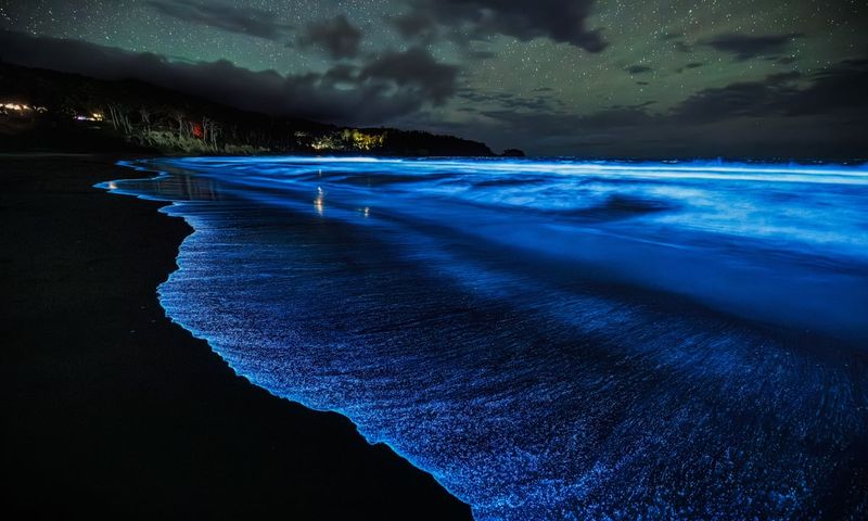 The phenomenon transforms waves into glowing ribbons of light, a natural spectacle that captivates those lucky enough to witness it. This bioluminescent brilliance offers a glimpse into the wonders of marine life, turning an ordinary beach into a dreamscape.