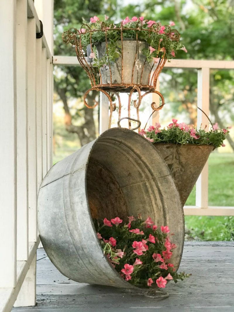 Vintage wash tubs, once essentials of domestic life, find new purpose as planters. Fill them with flowering plants for a vibrant display that commands attention.