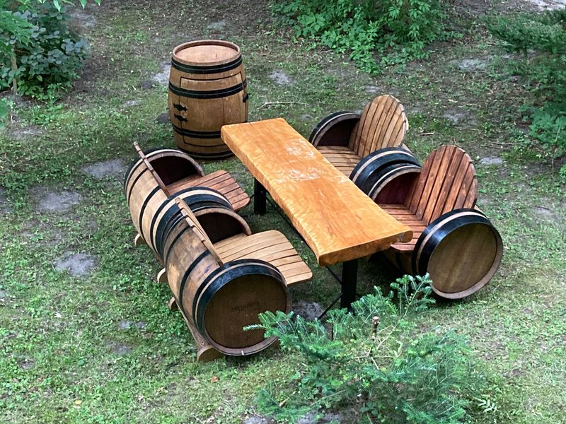 The barrel’s aged wood and metal bands exude warmth, inviting gatherings and conversations. Once vessels of celebration, they continue to foster joy in outdoor spaces.