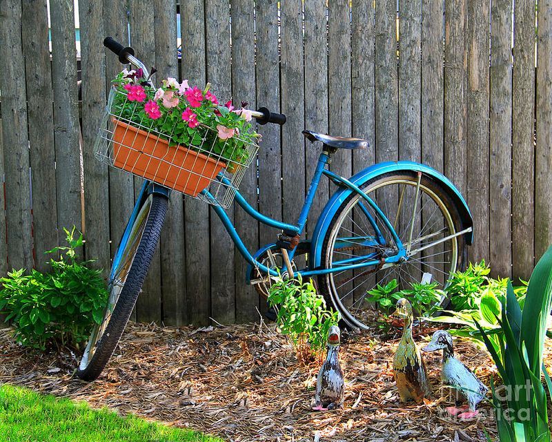 A vintage bicycle, with its cheerful colors and classic lines, transforms into an eye-catching garden feature. Lean it against a fence, filling the basket with vibrant blooms for a playful touch.