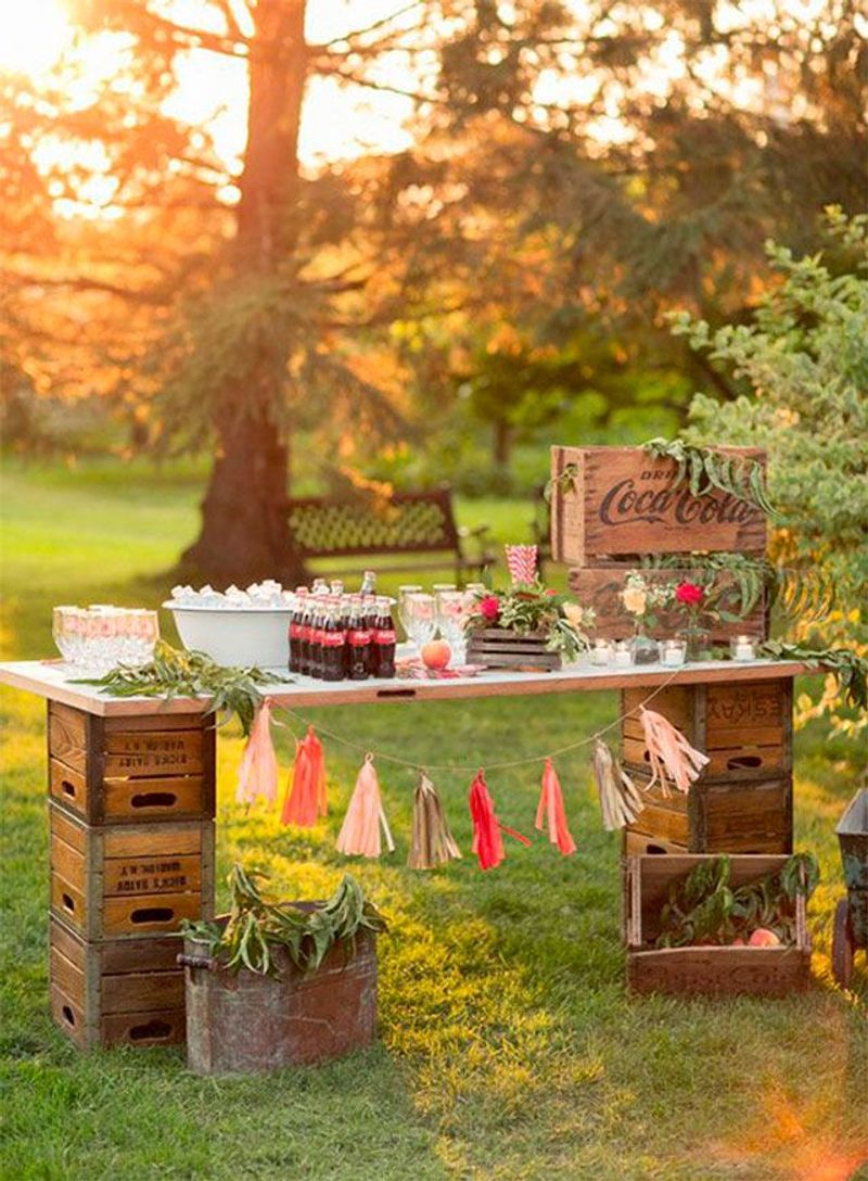 Their natural wood tones complement the greenery, enhancing the overall garden ambiance. Sturdy yet stylish, crates add depth and texture to outdoor decor.