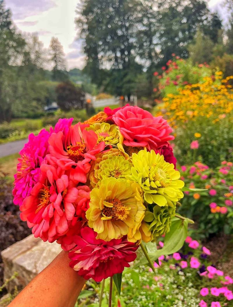 Zinnias are the life of the garden party, with their bold colors and resilience. When cut, they produce even more vibrant blooms, ensuring a lively display. Their daisy-like flowers and wide color range bring an energetic vibe to any arrangement, perfect for summer celebrations.