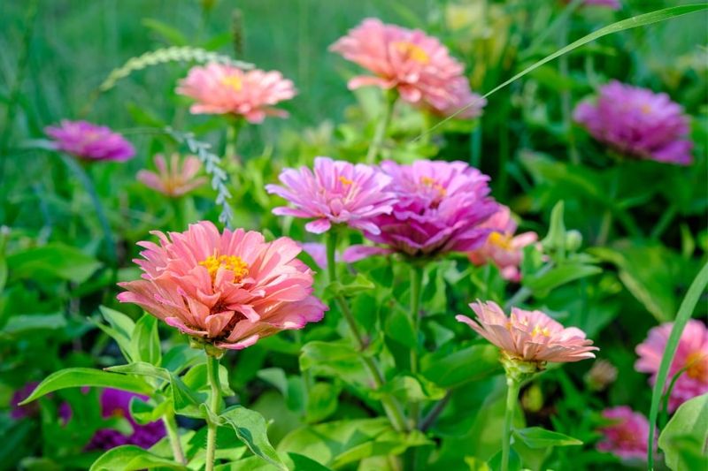 1. Zinnias (Zinnia elegans) – Bright, daisy-like flowers appear just 6–8 weeks after sowing or transplanting