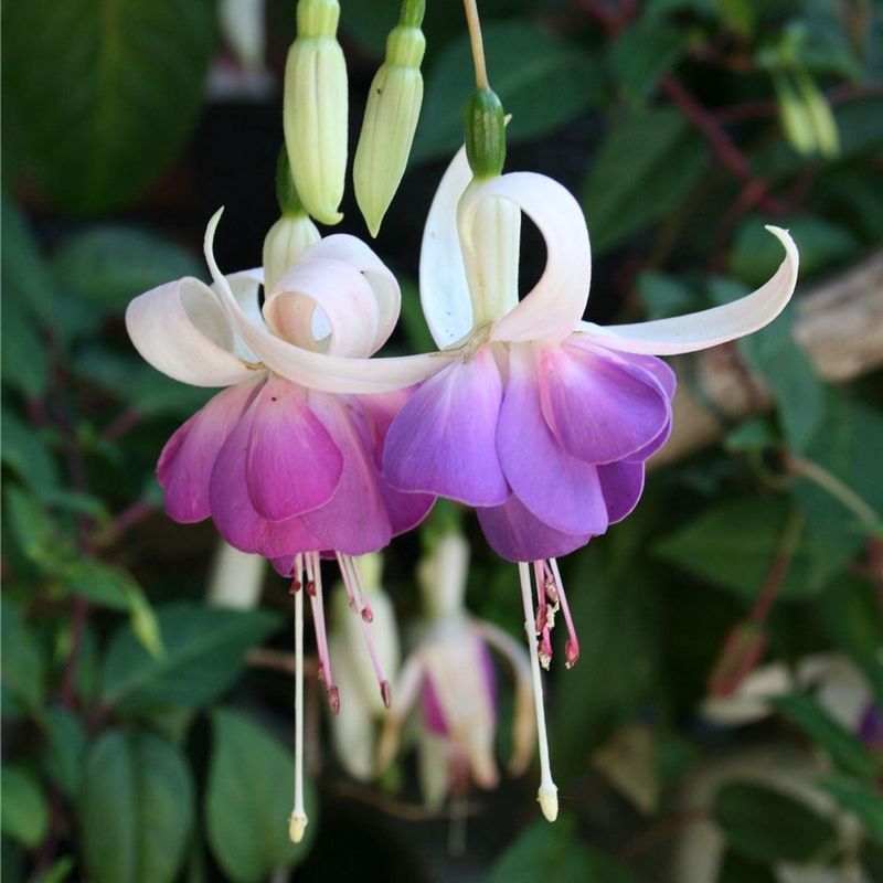 Fuchsia plants are renowned for their elegant, pendulous blooms that dangle like delicate earrings. These two-tone flowers begin blooming almost immediately after being planted into hanging baskets, creating a stunning visual display.