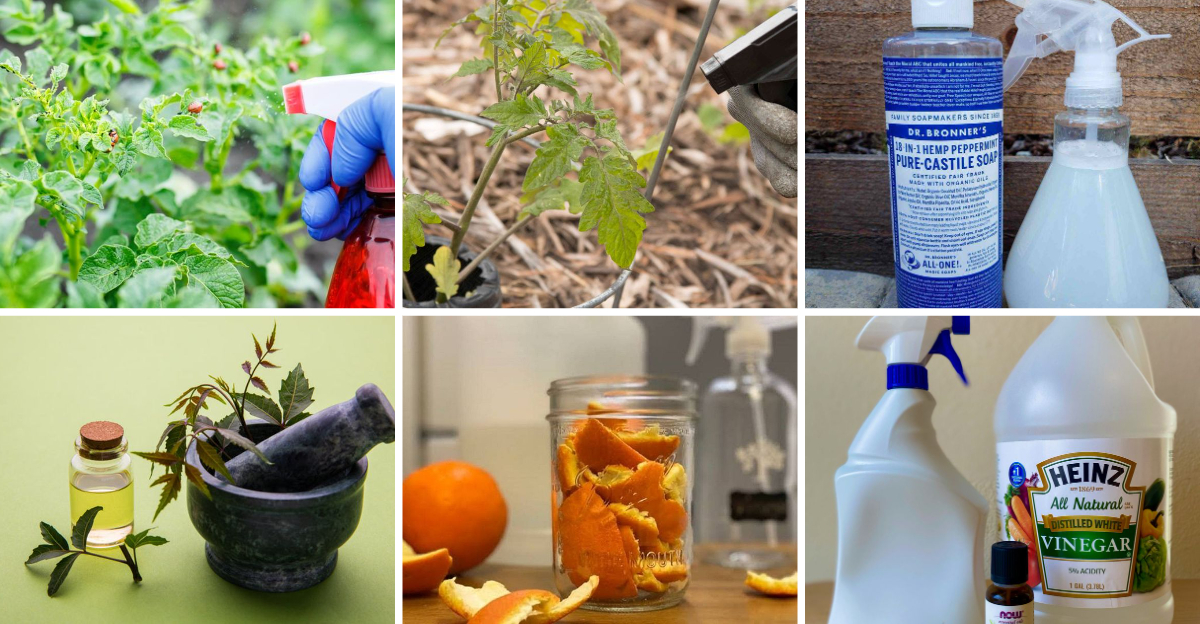 Crush six cloves of garlic and mix with one tablespoon of hot pepper flakes in two cups of water. Let this mixture steep overnight, then strain and add a drop of biodegradable dish soap.