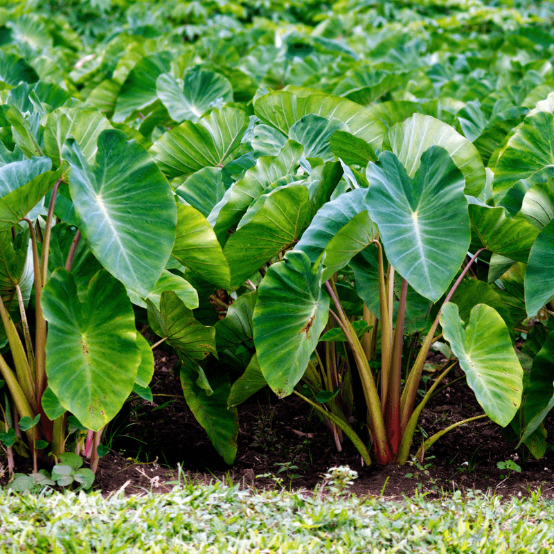 Taro plants, with their large, heart-shaped leaves, evoke a sense of tropical abundance in gardens. Often grown for their ornamental value, these perennials thrive in moist, well-drained soil and warm climates. Taro adds a lush, green backdrop and can be used to create a tropical-themed garden setting. Despite their exotic appearance, Taro plants are easy to care for and can adapt to various environmental conditions. Their impressive foliage and rapid growth make them a favorite among gardeners seeking to introduce an exotic element to their landscapes.