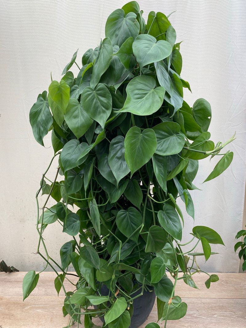 These leaves are often used in home decor, climbing gracefully up trellises and walls. They thrive in low light, making them perfect for various indoor environments.