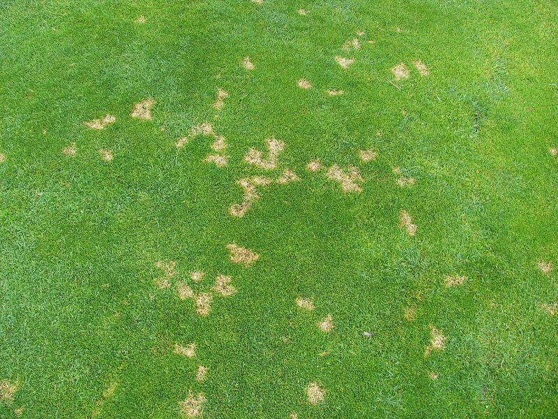 Dollar Spot, caused by Sclerotinia homoeocarpa, creates these distinctive patches that can merge into larger areas if left unchecked. Mainly affecting bentgrass, Kentucky bluegrass, and fine fescue, this disease thrives in cool, moist conditions, and low nitrogen levels exacerbate its spread. The morning dew often adds a shimmering touch, highlighting the contrast between healthy and affected areas. Regular fertilization and proper drainage can curb its growth, ensuring your lawn stays lush and beautiful.