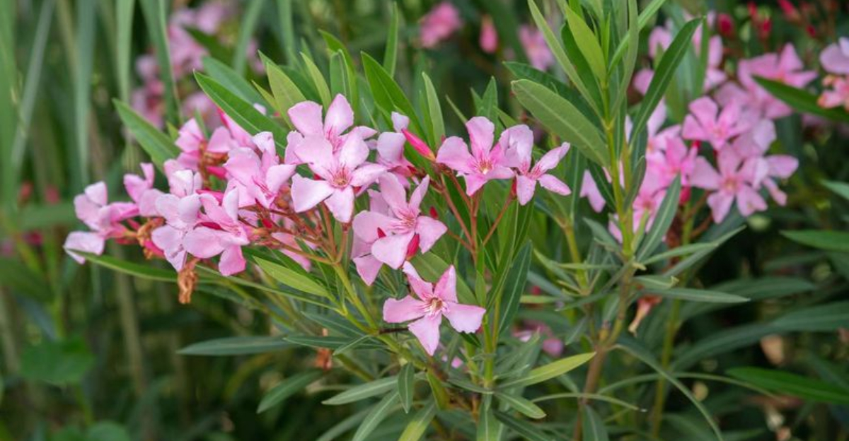 Oleander, with blooms as vibrant as a painter’s palette, radiates Mediterranean charm. Yet, every part is highly toxic, posing a risk to pets and children. Originating from regions with rich histories, it has decorated gardens for centuries. Its resilience in dry conditions makes it a popular choice, but caution is key. Planting it away from living spaces reduces accidental ingestion risks. Its captivating beauty is best enjoyed in safe spaces, where its colorful display adds flair without fear.