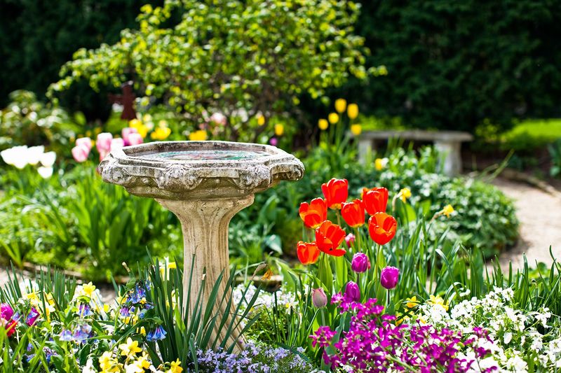 A clean birdbath is more than just an ornament; it’s a haven for birds, contributing to the garden’s lively ecosystem.
