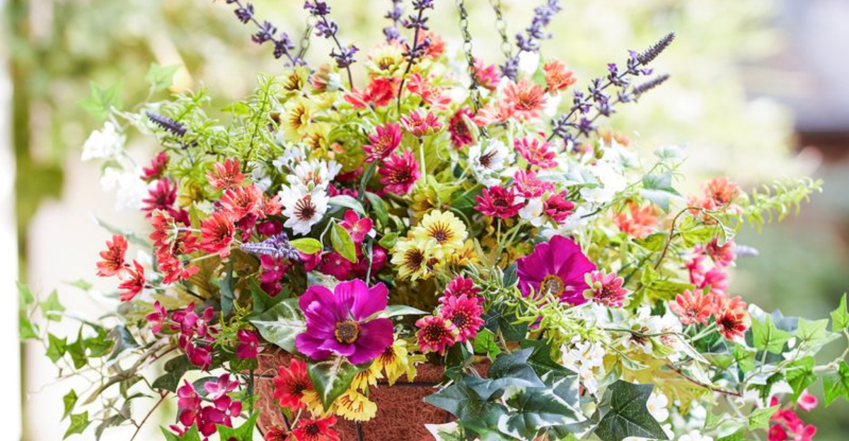 The cascading plants create a waterfall effect, transforming overhead spaces into lush gardens. Perfect for those with limited ground space, hanging baskets bring life to often-overlooked areas.