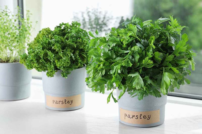 Parsley is the cheerful garnish of the herb world, bringing a pop of green to both dishes and decor. Its curly leaves are not just for show; they offer a crisp, fresh flavor.