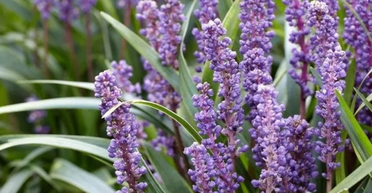 Liriope muscari, often referred to as Lilyturf, is a robust ground cover with grass-like foliage and striking purple flower spikes. It brings a sense of movement to any space.
