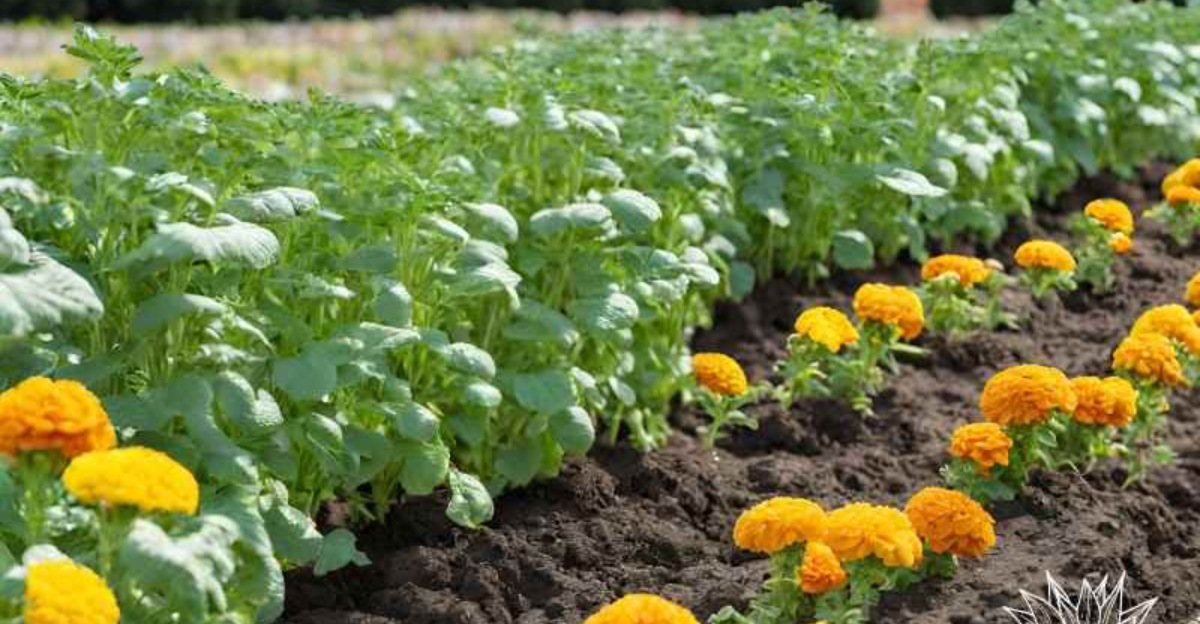 Planting marigolds around potatoes creates a protective shield, ensuring that the tubers develop without pest interference. This simple yet powerful combination allows gardeners to harvest healthy, pest-free potatoes while enjoying the beauty of marigolds in full bloom.