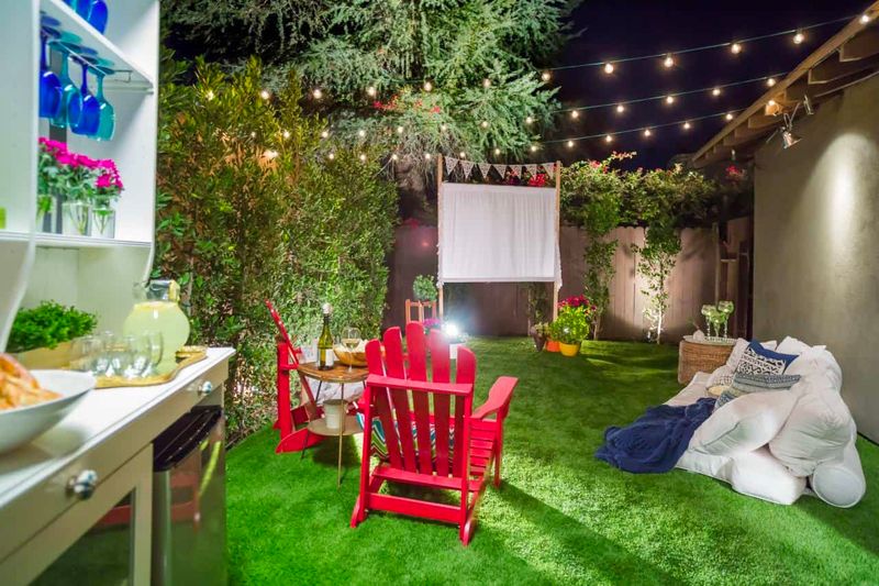 Transform your small backyard into an outdoor cinema for magical movie nights. Set up a projector and screen, using a blank wall or a portable screen as your canvas.