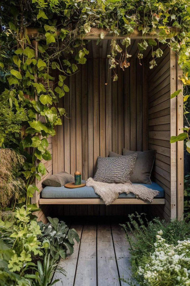 A reading nook offers a personal sanctuary within your small backyard. Choose a quiet corner and furnish it with a comfortable chair, cushions, and a small table for books or drinks.