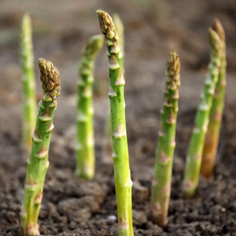 1. Asparagus – Perennial crowns that come back each spring