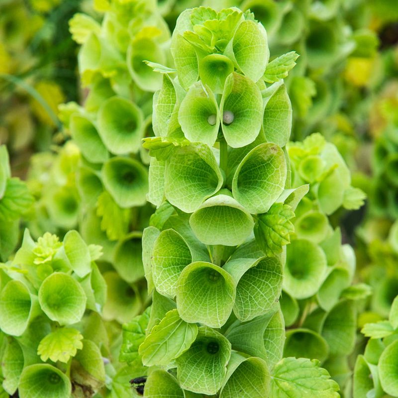Moluccella laevis, or Bells of Ireland, stands out with its unique, bell-shaped green calyces. Native to Turkey and Syria, it thrives in sunny, well-drained locations.